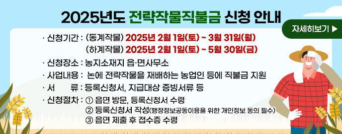 직불금을 신청하려면 농업인은 매년 정해진 기간 내에 신청서를 제출해야 한다. 일반적으로 신청 절차는 다음과 같다.